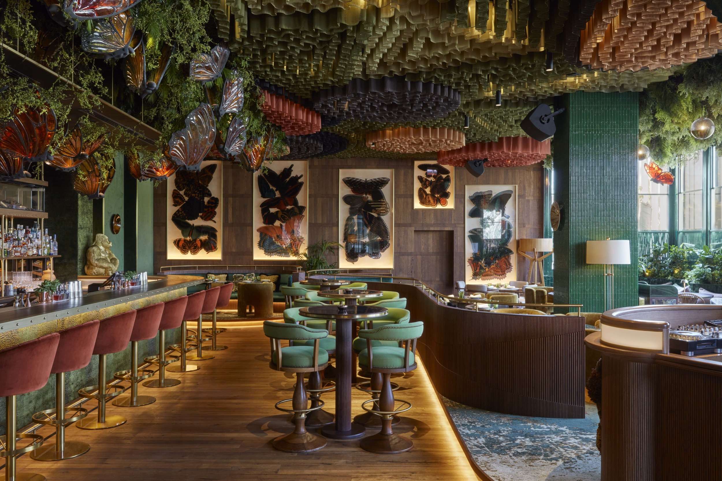 • Internationally recognised artist Lázaro Rosa-Violan created the three-story immersive environment, filled with lush vegetation and natural materials.