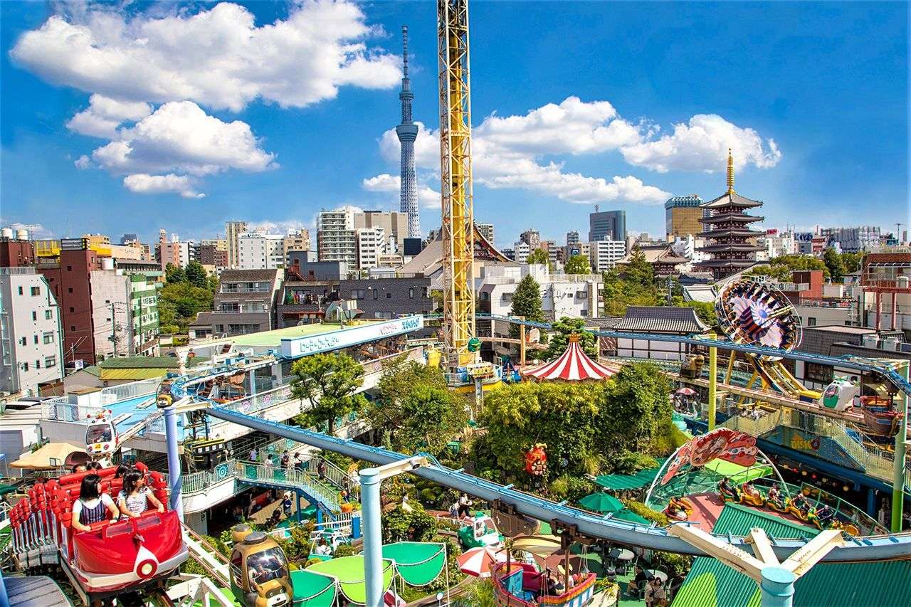 The park is compact but filled with character, featuring a variety of rides and attractions that appeal to all ages. One of the highlights is the small yet thrilling roller coaster, which has been in operation since 1953, making it the oldest in Japan. Other attractions include a classic merry-go-round, haunted house, and a panoramic observation ride that offers a view of Asakusa’s historic temples and the Tokyo Skytree.