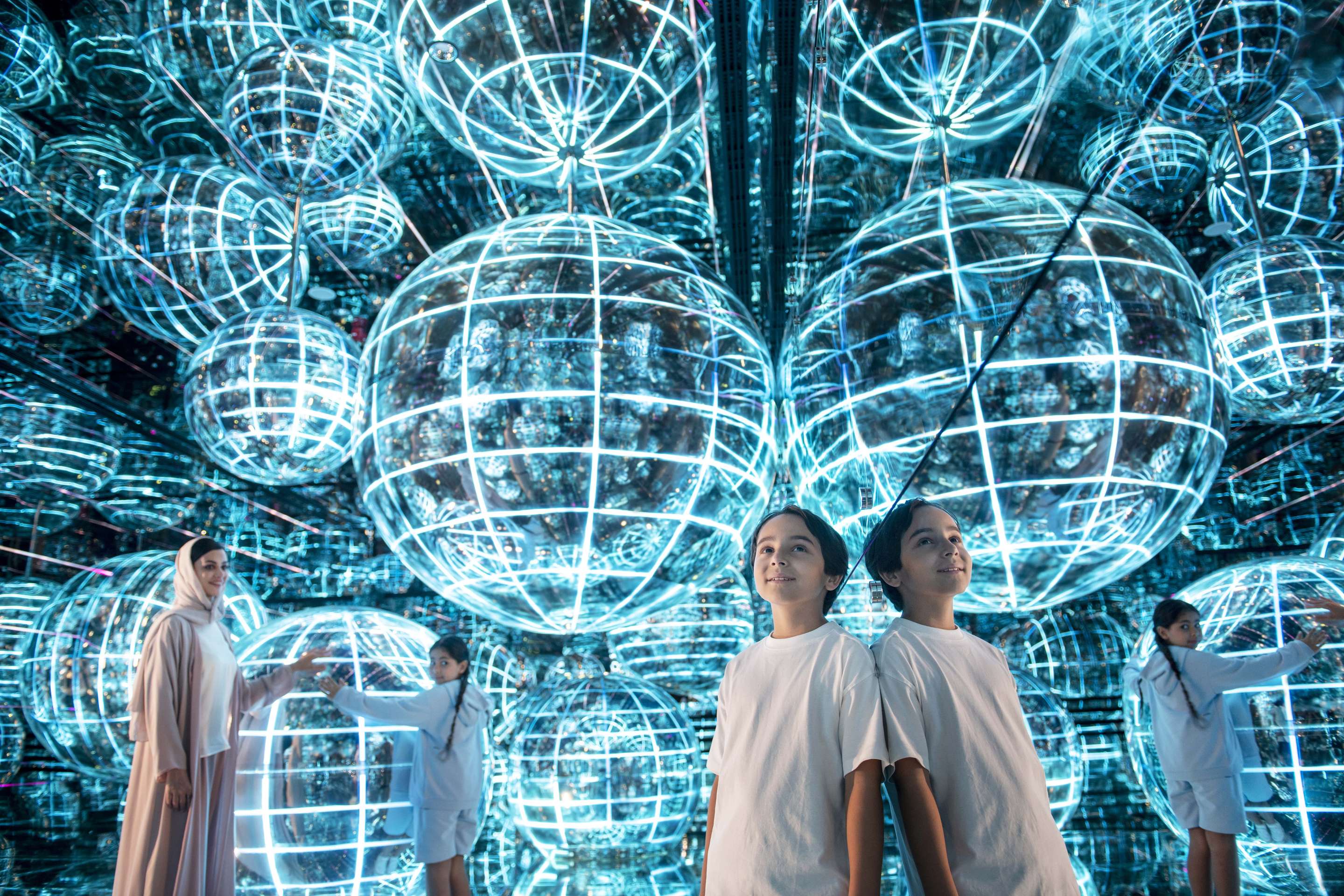 • Wander and wonder through different beautiful universes and vibrant worlds enclosed within the chambers of the park created by blending art and technology.