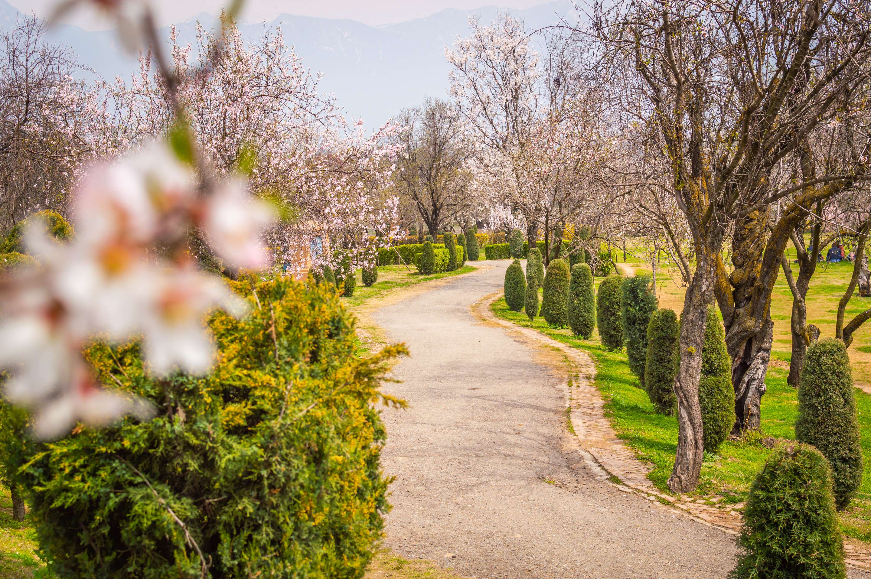 Located on the foothills of Koh-e-Maraan hill, also known as Hari Parbat, Badamwari Park is a unique garden. It has blooming almond trees that are pink and white in colour, and these trees line either side of the central pathway, making it a must-include in your Kashmir tour packages. It is situated on the banks of Nigeen Lake in Sher-e-Khas and was named after an Afghan ruler named Warris Shah, which gives it an additional historic depth.