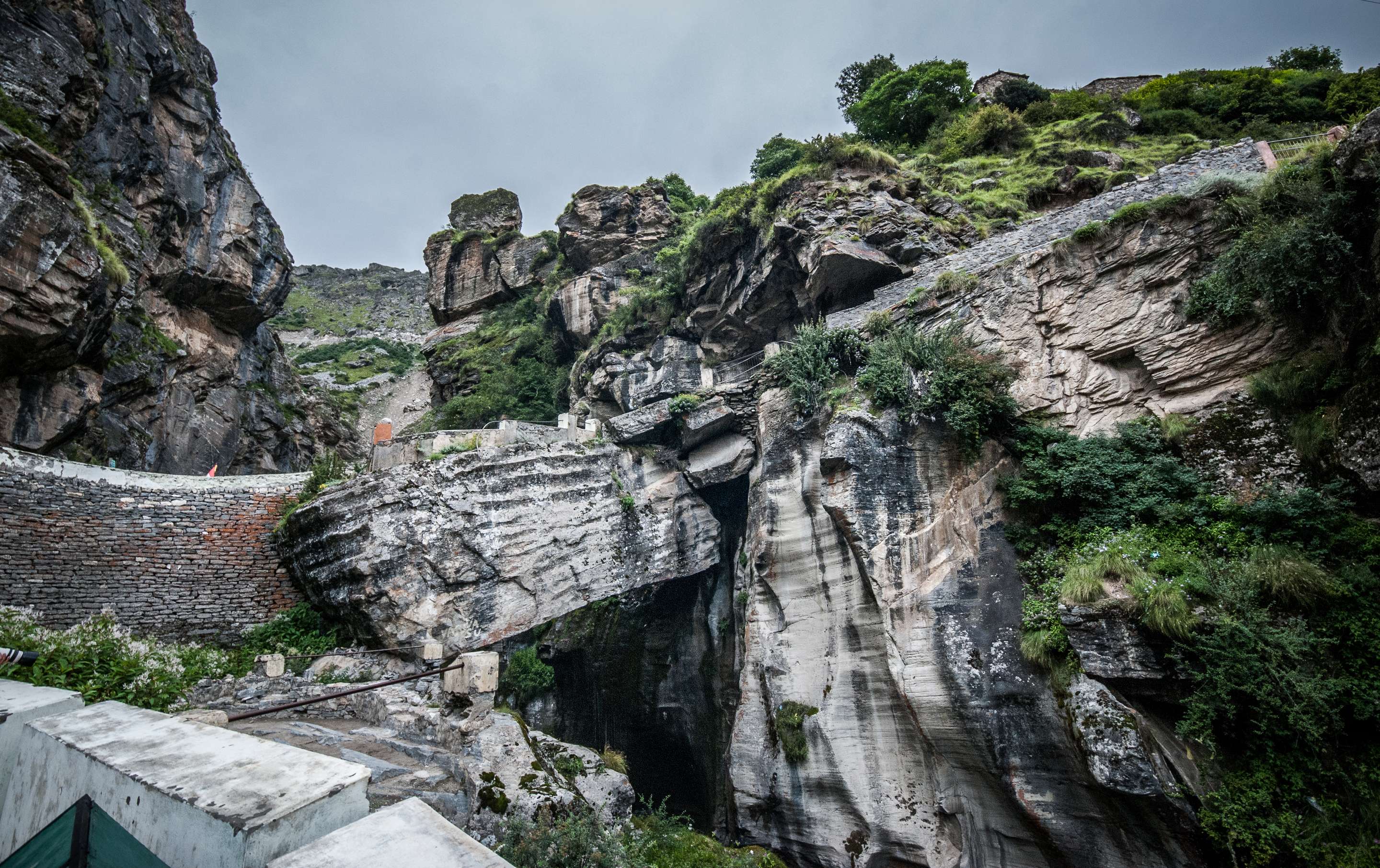 Bheem Pul is a remarkable natural rock bridge located in the Badrinath region of Uttarakhand, India. Situated in the scenic Mana Village, near the Indo-Tibetan border, this striking formation spans across the Saraswati River. The bridge is steeped in legend, with stories from the Mahabharata attributing its creation to Bhima, one of the Pandava brothers. According to myth, Bhima used his immense strength to lift a massive stone and form the bridge, allowing his mother Kunti to cross the river.