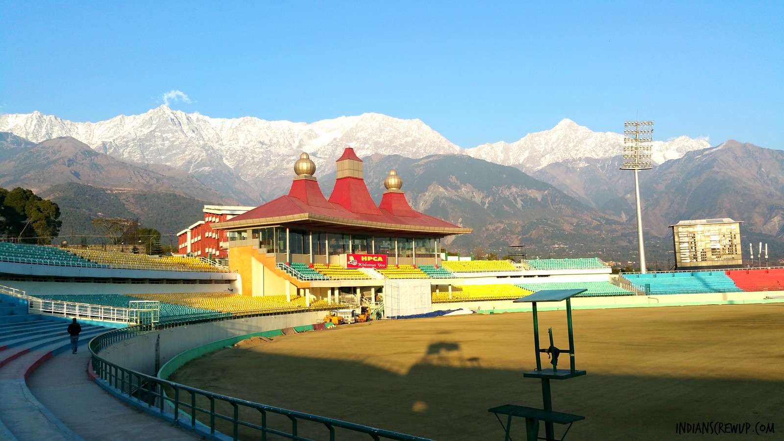 • Stand in wonder at the Dharamshala Cricket Stadium, framed by the majestic Himalayan peaks.