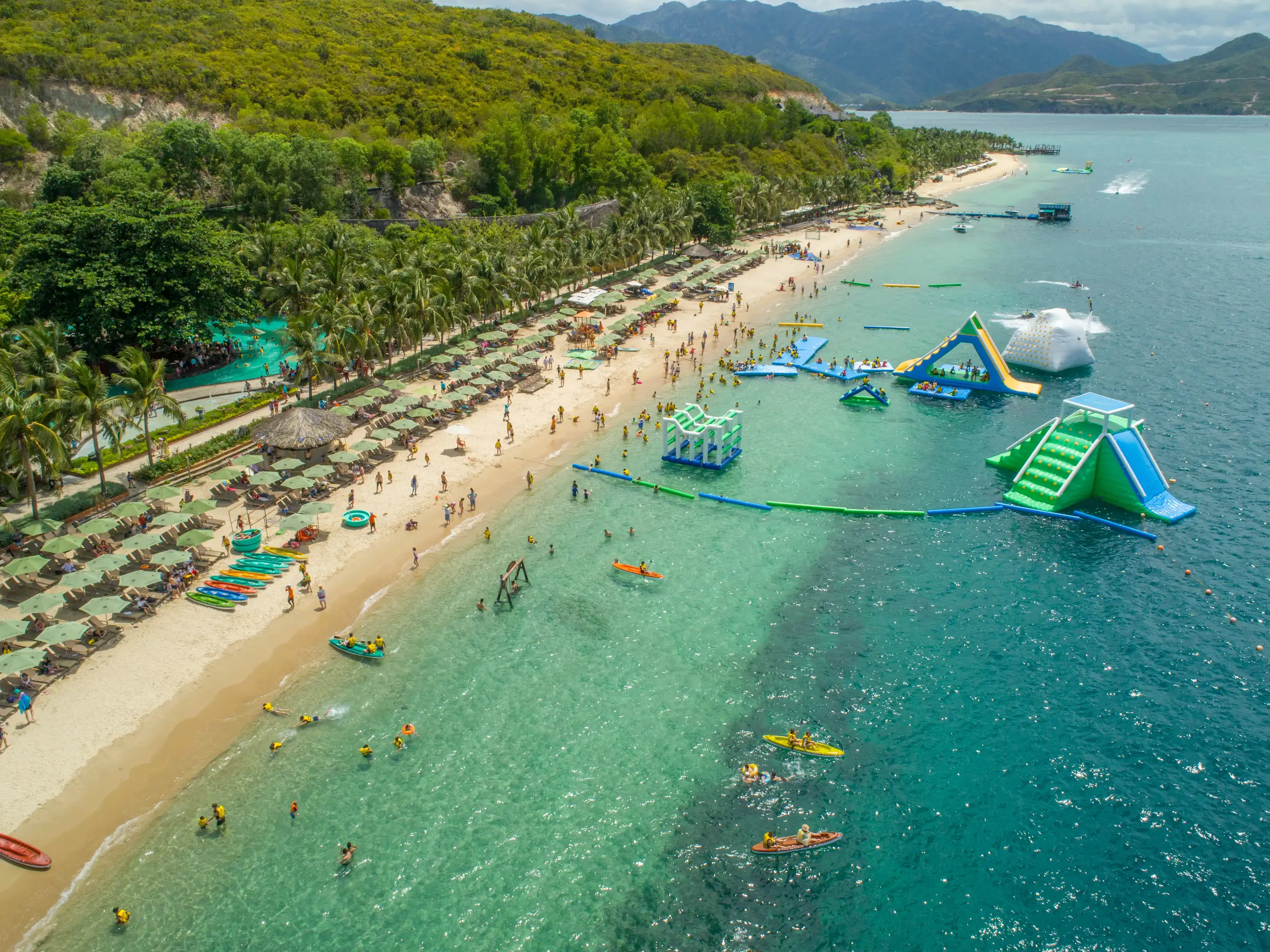Hon Tam Island, nestled off the coast of Nha Trang, Vietnam, beckons with its idyllic charm. With powdery white sand beaches, azure waters, and verdant vegetation, it's a haven for relaxation and adventure. Visitors can partake in snorkeling, diving, or simply unwind in luxurious beachfront resorts. The island's panoramic vistas of the sea and vibrant marine life make it a quintessential destination for nature lovers and beach enthusiasts alike.
