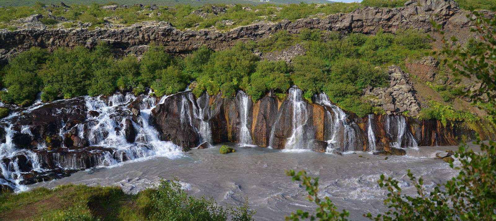 The waterfall stretches over about 900 meters, featuring crystal clear ice-cold water gently trickling down the black lava rock, forming countless small streams. The surroundings are covered by lush vegetation and contrasting black lava, enhancing the place's visual appeal. Nearby, the Barnafoss waterfall, known for its turbulent waters and unique natural bridge, offers another captivating sight. Hraunfossar is a must-visit for nature lovers and photographers, showcasing Iceland's geological wonders and serene beauty. For those planning an Iceland honeymoon trip, Hraunfossar provides a tranquil escape amidst stunning landscapes.