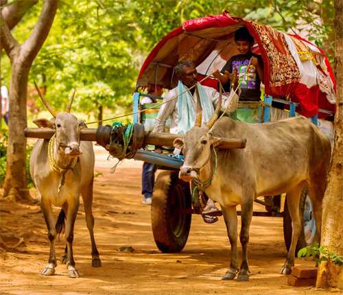 Ride through beautiful farmland in a traditional bullock cart or tractor to see rural India. These rides are both relaxing and educational, giving you a look at how people in the village live and how they farm. It's a slow-paced activity that's great for people of all ages. It lets guests really enjoy the natural beauty and peacefulness of the area.