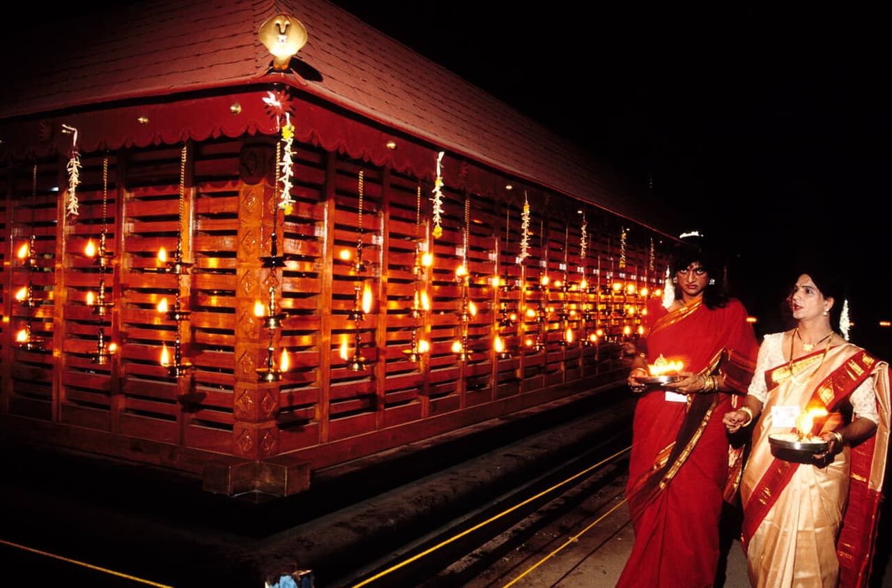 • Attend the famous Chamayavilakku festival, where men dress as women and offer lamps to the goddess in a gender-fluid tradition.