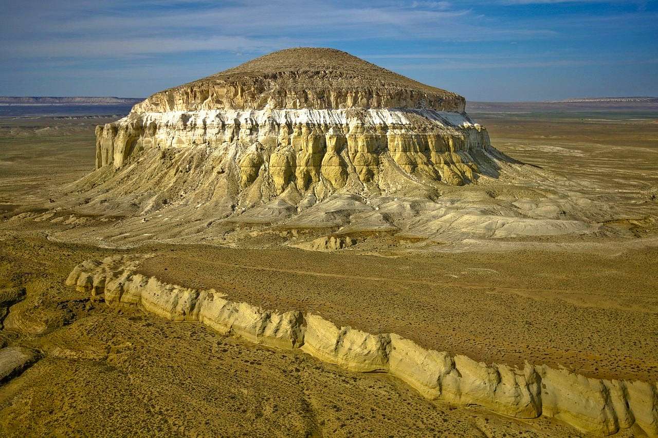 Located close to the town of Shetpe, the two major tourist attractions and natural wonders of Kazakhstan - Mount Sherkala and the Valley of Balls. Lying in the middle of a flat desert, this mountain sits as a giant blockage. However, visiting this place is considered one of the best things to do in Kazakhstan due to its enormous size and the variety of flora and fauna it holds. The Valley Of Balls on the other side gets its name by the large collection of stones shaped like balls in it.