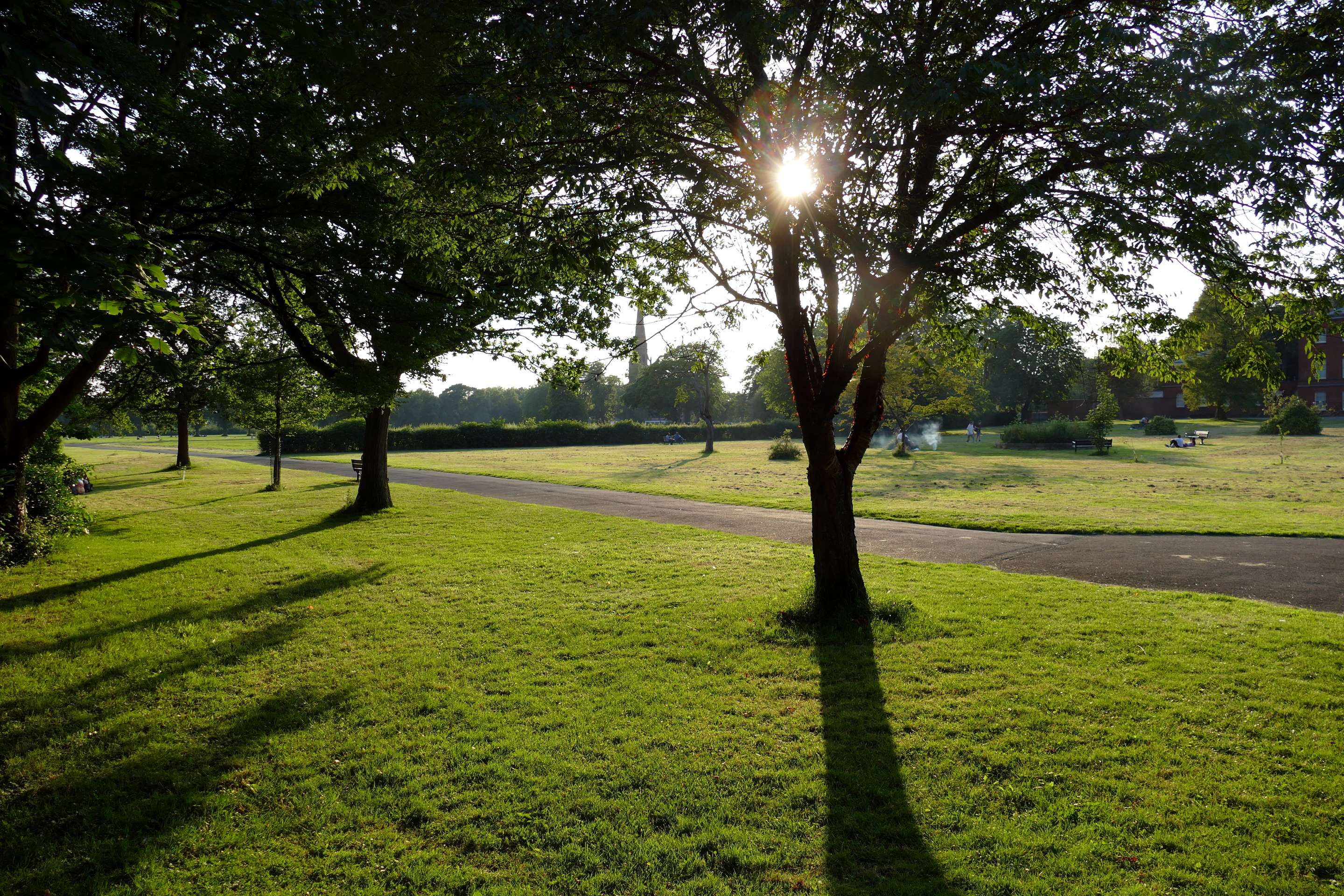 The park is steeped in history, featuring charming landmarks such as the Shakespearean Garden and the historic Platt Hall, which houses the Gallery of Costume. Sports facilities include tennis courts, a skate park, and ample open spaces for picnics or casual games.