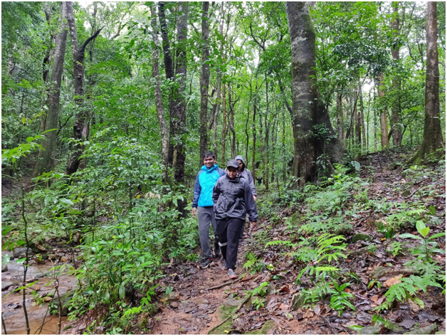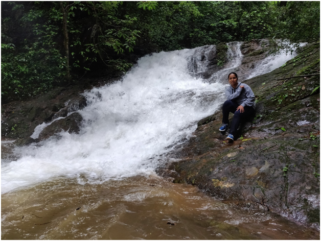 After trekking for 2 hours, the group halted at a pretty house engulfed in lush greenery where they were served refreshing tea. From there, their journey started getting beautiful as they came across a number of streams passing through the jungle. What followed became the best part of the journey for Sameena – it was the sight of the magnificent Hindlumane Falls which left every spellbound. After capturing the scenery in their hearts and cameras, they proceeded with their journey by hiking the hill beside the waterfall.