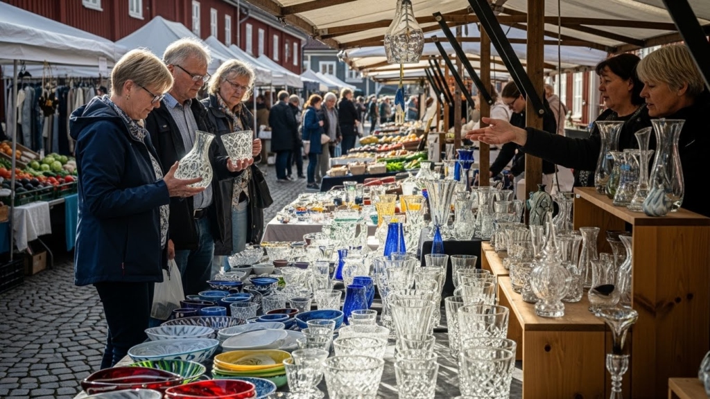 Glassware from Småland is one of the most respected craft purchases you can bring back from Sweden. The region is known for hand-blown crystal bowls, vases, candle holders, and drinking glasses made using traditional furnace techniques. Artisans shape molten glass by hand, creating subtle variations in colour and thickness that make each piece unique.
