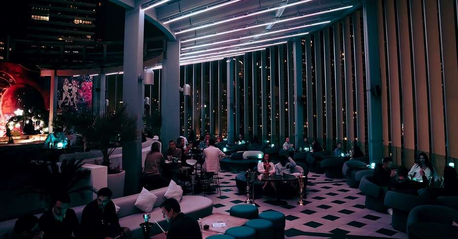Interiored with Art Deco- style the place is decorated with gold and crystals, offering classic rooftop mocktails with bar-style menu of snacks. The eventful rooftop offers a sweeping view of the water bay surrounded by the twinkle of skyscrapers at night. Ladies nights, live DJs, and Friday rooftop brunch are some it’s famous features that attract a lot of crowd from around the place.