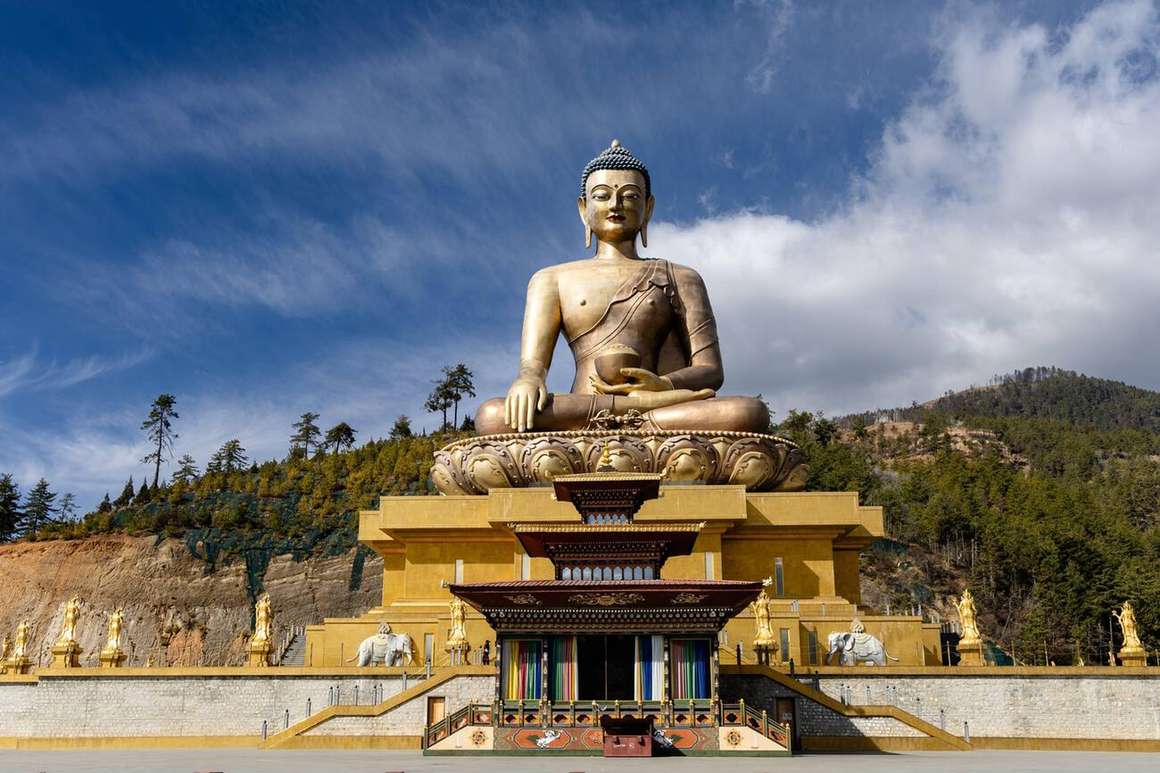 Stand before the majestic 177-ft Buddha Dordenma in Thimphu, enjoying stunning views of Thimphu Valley’s green hills and city skyline.