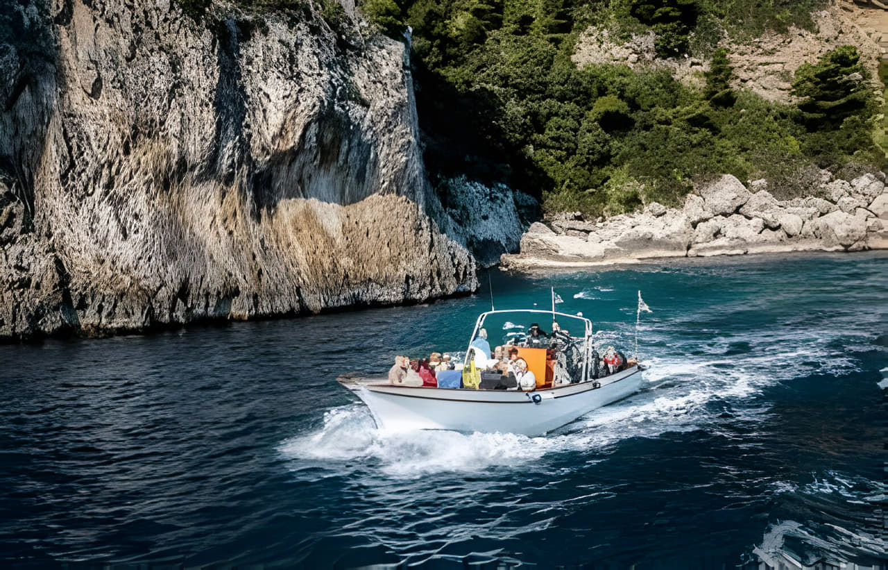 The Capri Boat Tour offers a scenic journey around the stunning island of Capri, showcasing its dramatic coastline, crystal-clear waters, and charming sea caves. The optional Blue Grotto Tour adds an adventurous experience, allowing visitors to enter the famous sea cave known for its radiant blue light. Visitors can enjoy breathtaking views, explore hidden coves, and admire the natural beauty of Capri on this unforgettable tour.