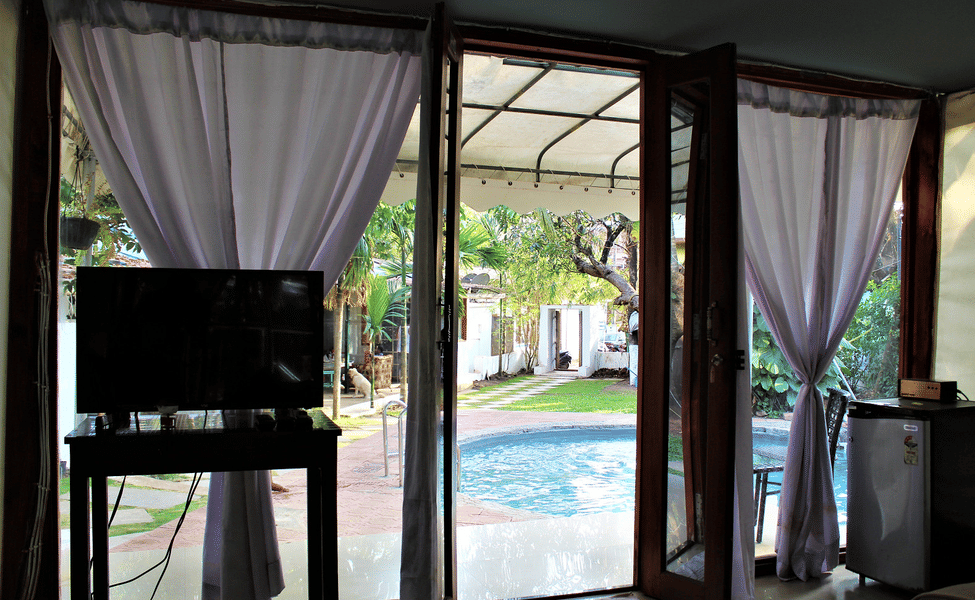 The resort is located at a distance of around 43 km from Goa international airport and is situated in the Chapora area. It is easily reachable by public or private modes of transportation.
