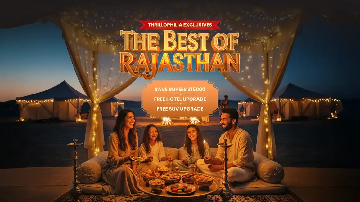 Relax in luxurious desert camps in Jaisalmer that combine modern comfort with the unique experience of staying amid golden sand dunes.