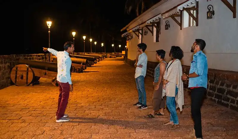 Embark on the Fort Aguada Port & Jail Night Walking Tour, a captivating 1-hour journey into the 17th-century Fort Aguada's fascinating history. Built by the Portuguese nearly 400 years ago, this iconic monument served as a defensive stronghold, a thriving port, and later, a prison for Goan freedom fighters during Antonio Salazar’s regime. Guided by a local storyteller, the tour provides exclusive access to key sections of the fort, including a serene chapel, a freshwater spring, former kitchens, and dimly lit prison cells. Each area reveals a chapter of the fort’s evolution, from its role in colonial battles to its transformation into a symbol of resilience. Marvel at the fort’s signature Portuguese architecture while uncovering gripping tales of epic battles fought between Indian kingdoms and the Portuguese empire. Hear haunting stories of prison inmates that echo within the walls, bringing its dramatic past to life. Conclude the experience with stunning views of the Arabian Sea under the night sky, making this tour a perfect blend of history, architecture, and nocturnal charm.