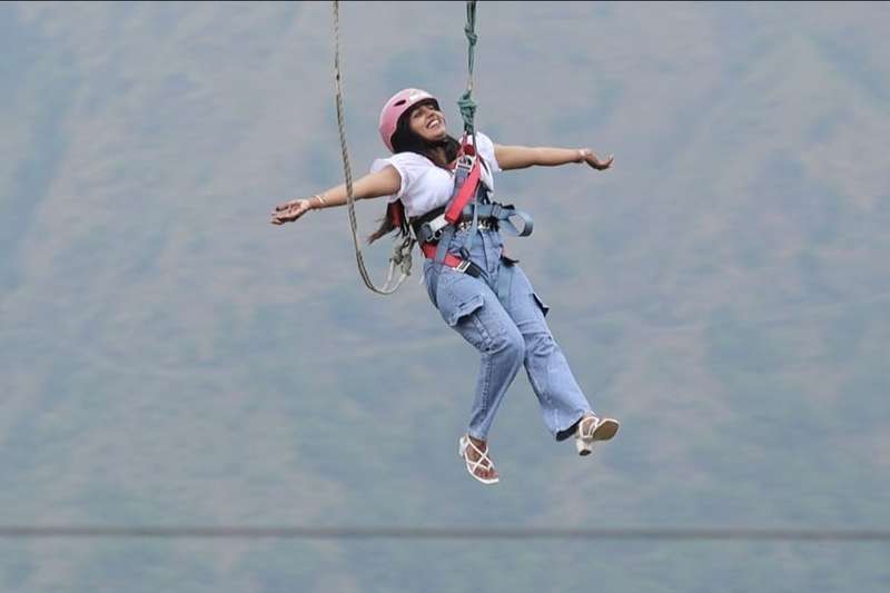 Marvel at the stunning Himalayan views and lush greenery all around as you take a heart-racing jump from the platform during your free fall experience.