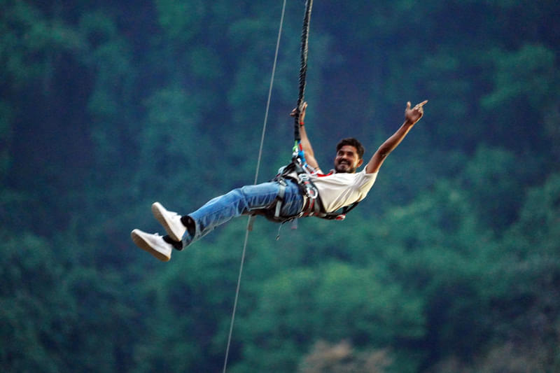 Enjoy 2 minutes of pure thrill with freestyle bungee jumping in Rishikesh, combining adventure, speed, and stunning views in one unforgettable jump.