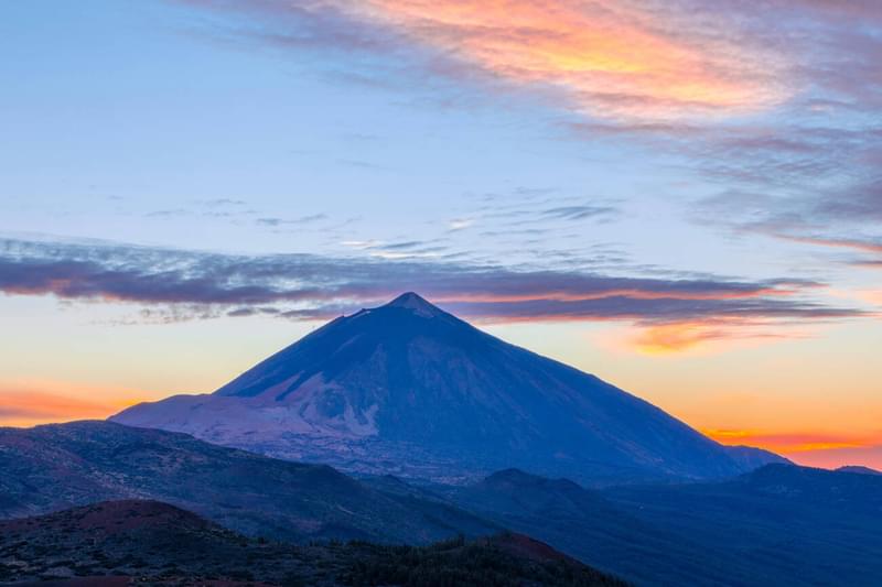 Watch the sunset over Tenerife from the summit of Mount Teide for an unforgettable, panoramic view that transforms the island into a canvas of vibrant colours.