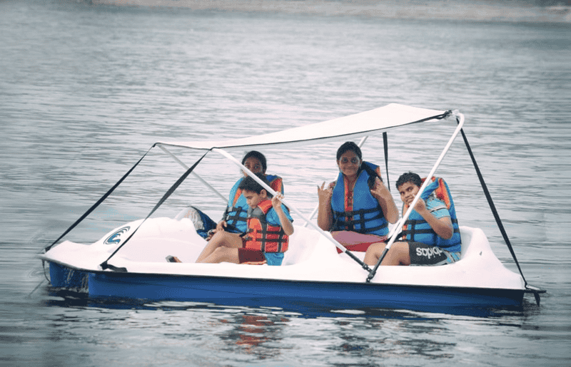 Enjoy a peaceful 20-minute paddle boating session at Kanva Dam, Ramanagara, perfect for those looking for a calm, serene water experience surrounded by nature.