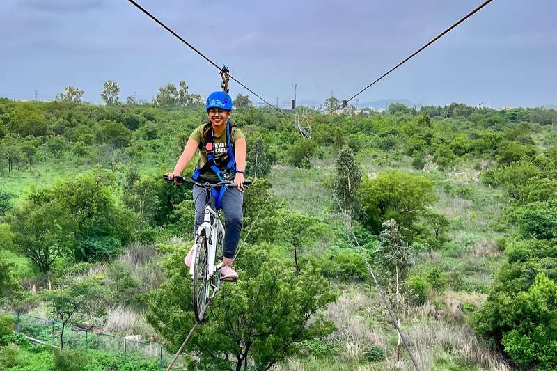 Sky cycling in Hyderabad feels like pedaling through the clouds—an adventure that takes you high above the ground on a 500-meter-long cable. As you ride, the world below turns into a blur of treetops and open skies, offering stunning panoramic views all around. With safety belts, helmets, and trained instructors, you can safely enjoy the activity. Sky riding is an unforgettable event for anyone looking to overcome their fear of heights or take on a new challenge.