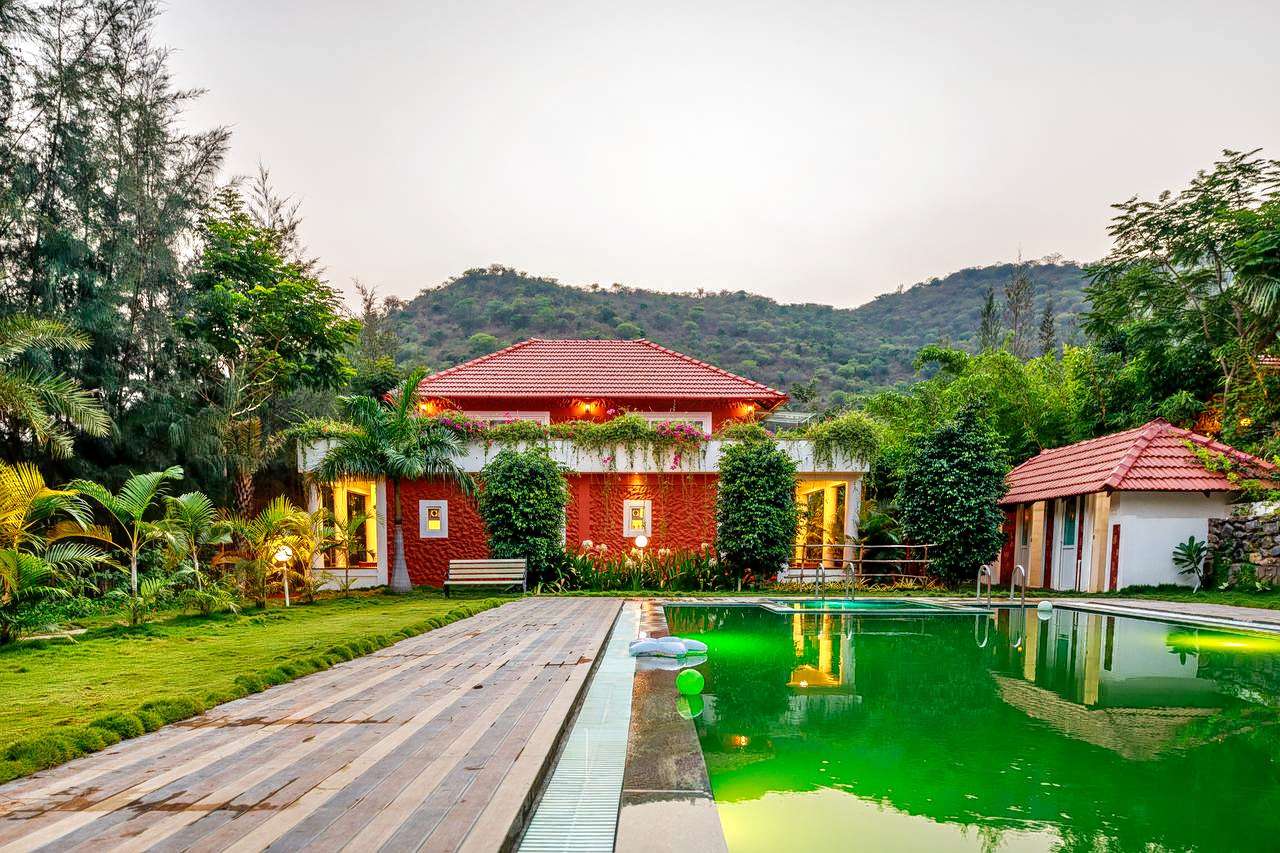All cottages offer an array of amenities to make the guest's stay as relaxed and comfortable as possible, such as comfortable beds, air-conditioners, large attached washrooms with fresh water, and hot showers. The resort also offers a ton of activities that are exciting and boundless such as Nature Walk, Organic Farming, Jeep Trail, Indoor-Outdoor Games, Cycling, Horse Ride, and more! The resort has in-house dining.