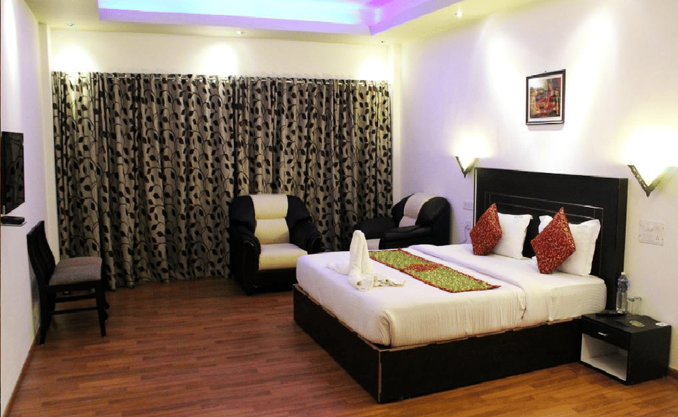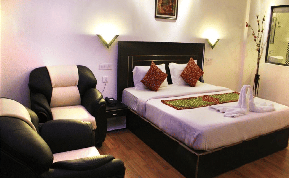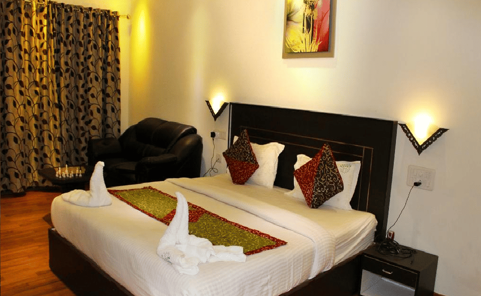 Room comes with a bed, attached washroom, air conditioning, and private sit-out area.