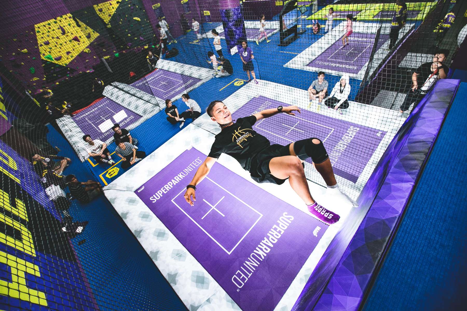 - Try out different tricks and flips in the trampoline area.