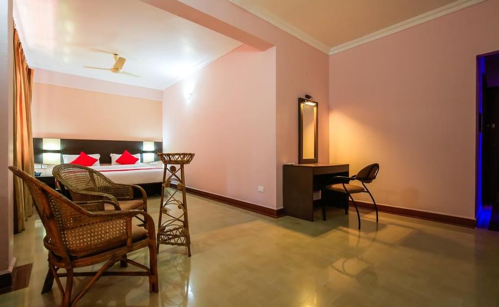 Standard AC Room on the sharing (2 Adults 1 child) basis with scenic Balcony views along with continental breakfast and other amenities like AC, Wifi, Garden area, Golf course, Daily newspaper, Bar, and Restaurant.