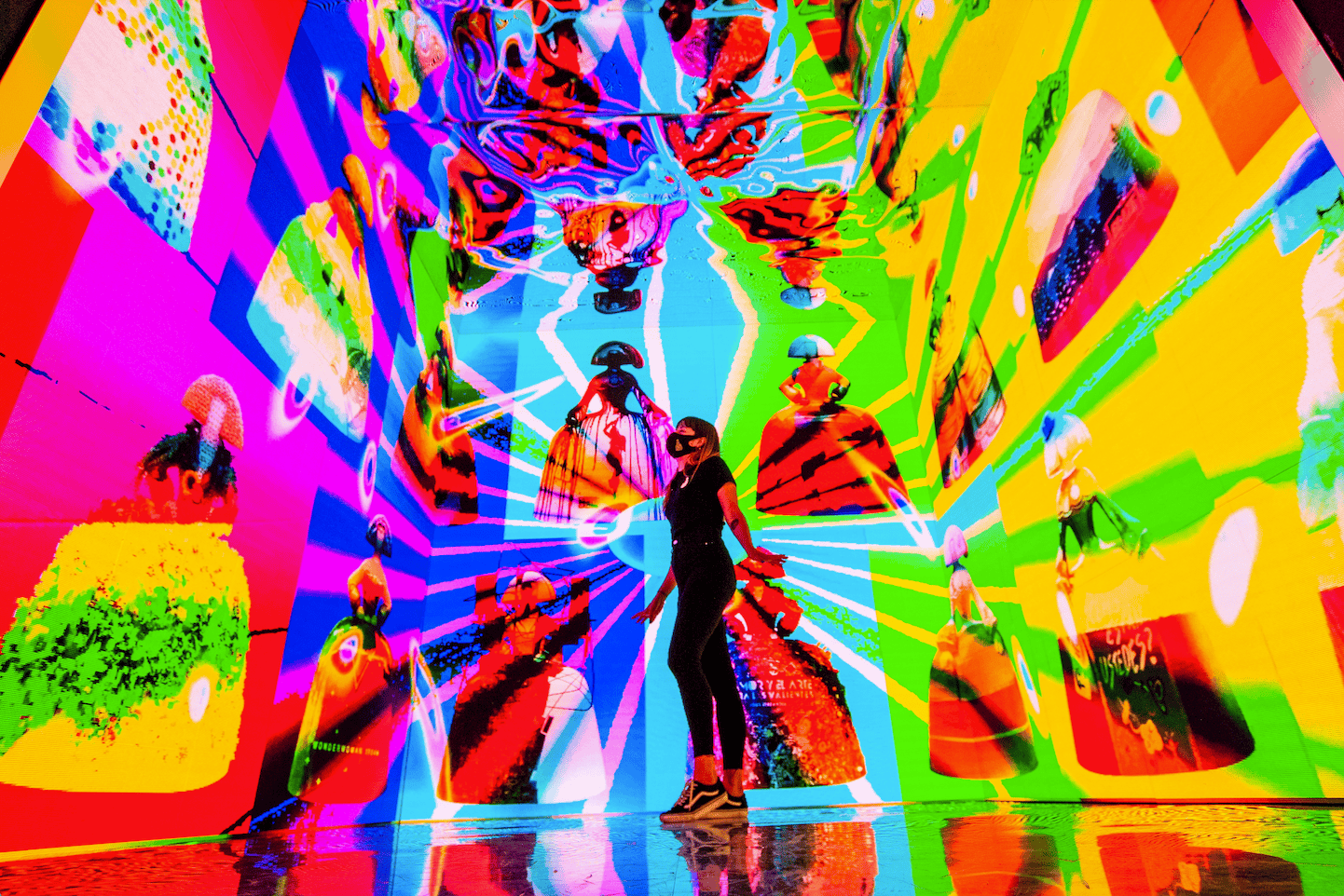 - After the innovative paintings, you move forward to witness and study the interpretations of Velázquez’s work including video mapping, holograms, Baroque and contemporary music fusion, and various projections.